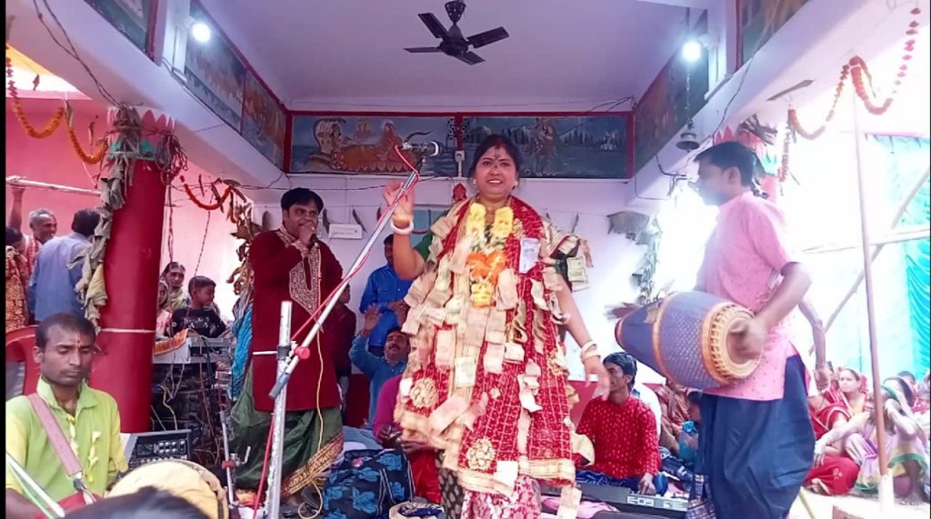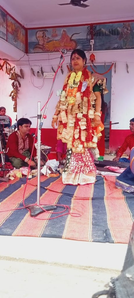 अनोखा सम्मान :सेम्पु, आलता, सिंदूर, चॉकलेट, तेल से लेकर पैसों के माला बनाकर गायक को किया गया सम्मानित।
