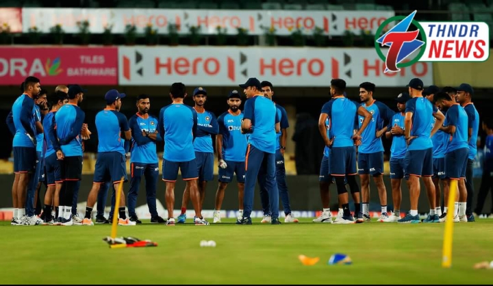 टिम इंडिया के खिलाड़ी जेएससीए स्टेडियम में प्रैक्टिस में जाते हुए।