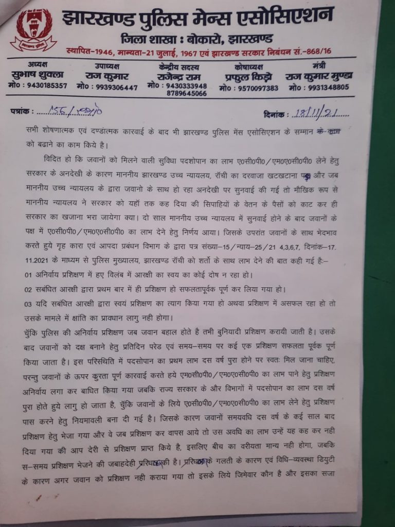 बोकारो : राज्य में नक्सलियों को सरेंडर कराने पर पुलिस मेंस ऐसोसिएशन ने सवाल खड़ा किया है।