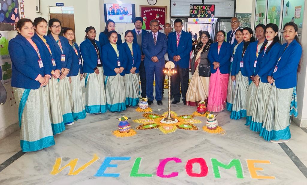 कार्यक्रम का उद्घाटन मुख्य अतिथि के रूप में उपस्थित विद्यालय के निदेशक डॉo दीपक कुमार सिन्हा, विशिष्ट अतिथि के रूप में उपस्थित रामाकांत प्रसाद, एवम डॉo पदमा मुखर्जी के कर कमलों द्वारा संयुक्त रूप से फीता काटने के उपरांत दीप प्रज्वलित कर किया गया।
